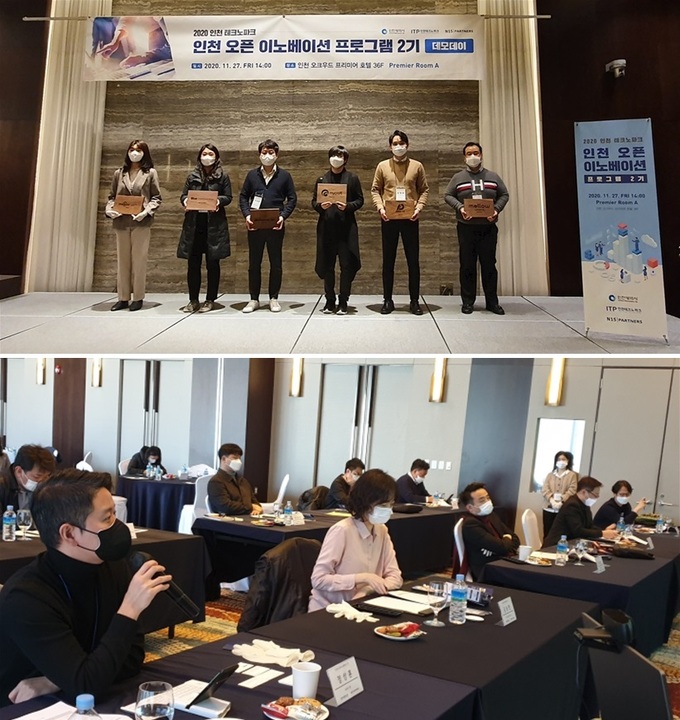 ‘2020 오픈이노베이션 프로그램’은 인천테크노파크 SW융합센터가 주관하고 엔피프틴파트너스가 운영하는 오픈이노베이션으로 기업 진단 및 진행하고 있는 사업 아이템을 고도화를 위한 육성 프로그램과 팁스(TIPS)연계형 플랫폼을 구축하고 있다. 이번 데모데이는 지난 6월부터 약 6개월 동안 진행된 오픈이노베이션 프로그램의 마무리 행사로, 코로나19로 인한 사회적 거리두기 지침에 따라 진행됐다.