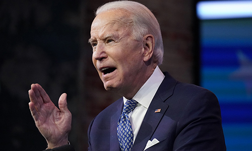 바이든 당선인은 또 미 상원과 하원이 전날 통과시킨 8920억 달러(약 987조 원) 규모의 5차 경기 부양책이 불충분하다며 추가 부양책 동원 필요성을 강조했다. 바이든 당선인은 내년에 새 의회가 출범하면 새 경기부양법안을 마련하도록 요청하겠다고 밝혔다.