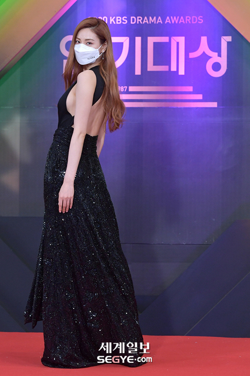 배우 나나가 31일 오후 서울 여의도 KBS에서 열린 '2020 KBS 연기대상'레드카펫에 참석해 포즈를 취하고 있다.