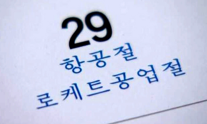 NHK가 보도한 영상(사진)의 달력 11월29일에는 ‘항공절’ ‘로케트공업절’이라는 푸른색 글자가 인쇄돼 있었다.