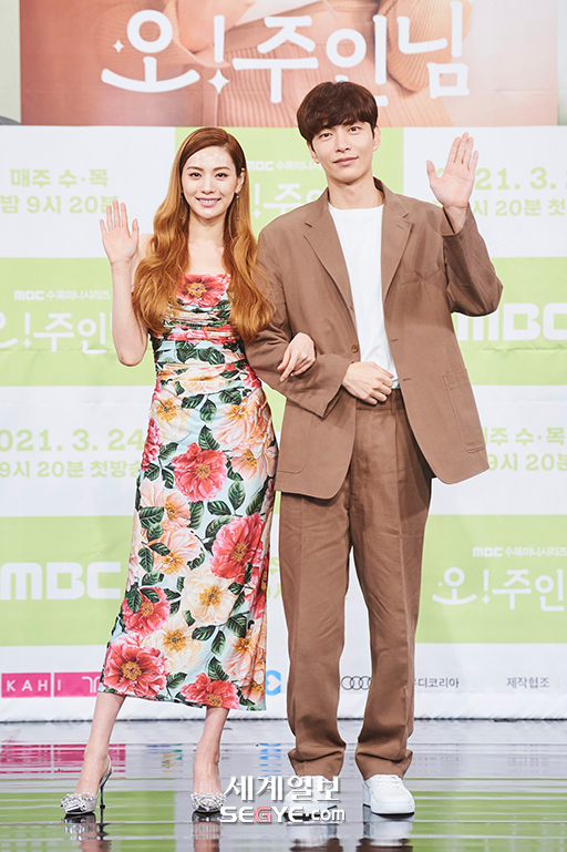배우 나나(사진 왼쪽)와 이민기가 24일 오후 온라인 생중계로 진행된 MBC 새 수목극 '오! 주인님' 제작발표회에 참석해 포토타임을 갖고 있다.