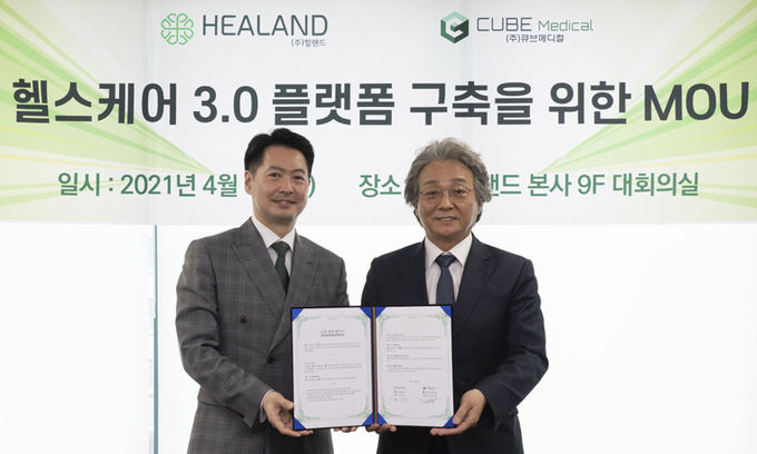 헬스케어3.0플랫폼 업체 힐랜드가 유전자 기반의 생명공학 기술 전문업체 큐브메디컬과 업무협약을 체결하고 유전자 검사 플랫폼 및 헬스케어3.0 상품분야에서 협업하기로 했다고 6일 밝혔다.