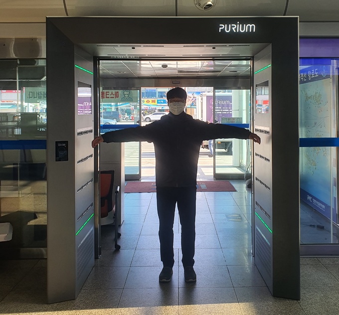 연안여객터미널 1번 출입구에 설치된 해당 기기는 IoT 센서를 통해 사람의 움직임을 감지한다. 이어 공기 분사로 신체와 옷에 붙은 미세먼지를 털어준다. 기기 측면의 친환경 LED 살균기와 천연 피톤치드 겔을 통해 공기를 살균·탈취하고 바이러스도 차단시킨다. 더불어 24시간 실내 공기질을 분석하는 동시에 문제점 및 개선 방안까지 알려준다.