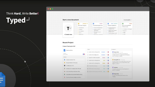 현재 개발 중인 문서 작성 툴 ‘타입드(Typed)’는 웹 익스텐션을 통한 간편한 자료 수집이 가능하며, 별도의 뷰어 프로그램 없이 문서 작성과 동시 조회가 가능한 스플릿 뷰어(spit viewer), 백링크(backlink) 기능이 있다. 이밖에도 자료 추천 기능을 통해 리소스 활용의 장점을 바탕으로 사용자의 효율적인 문서 작성을 지원하는 웹 기반 스프트웨어다.