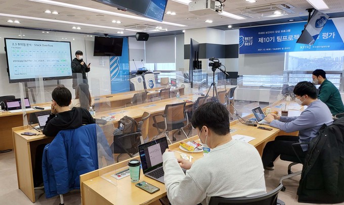차세대 보안리더 양성 프로그램(BoB) 10기 2단계(팀프로젝트) 최종 평가에 참석한 멘토단이 교육생의 발표를 경청하고 있다. 한국정보기술연구원 제공