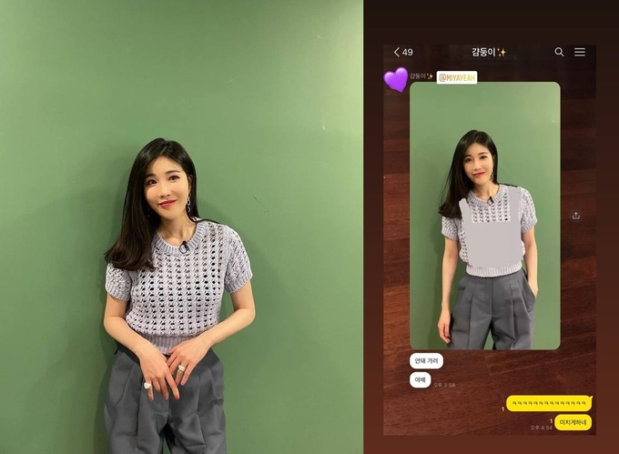 공개된 사진에는 이해리가 선미와 메신저로 대화한 내용이 담겨 있다. 해당 메신저 대화에서 선미가 이해리의 노출 의상에 “안돼. 가려. 야해”라고 말하자 이해리는 “ㅋ ㅋㅋㅋ 미치게 하네”라고 재치 있게 응수해 눈길을 끌었다.