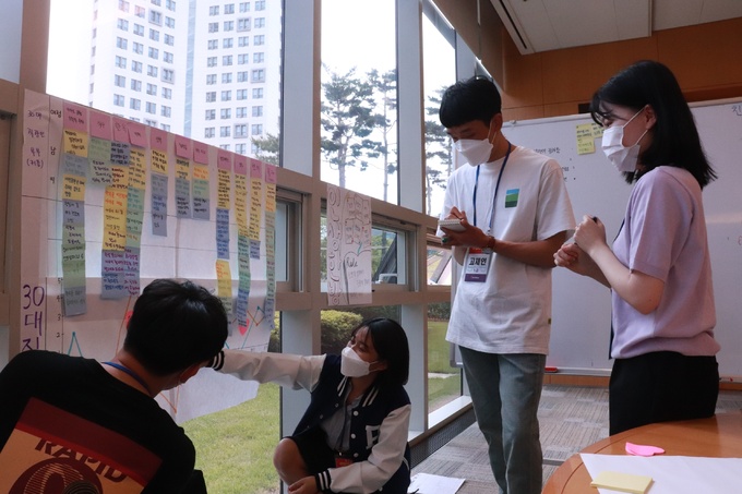 단순히 취업 지원에 그치지 않고, 교육생들이 실무 역량까지 함양할 수 있도록 조별 실무 과제 수행도 진행한다. 문제 해결 방법론인 ‘디자인 씽킹’을 활용해 직접 기업 실무 과제를 해결해 보며 실제 기업과 조직의 업무 방식을 학습할 수 있다.