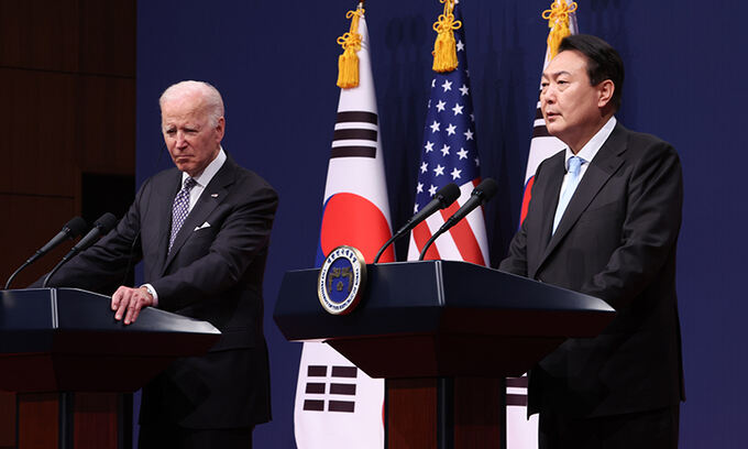 윤석열 대한민국 대통령은 조셉 R. 바이든 미합중국 대통령의 방한을 환영한다. 이번 정상회담은 대한민국 대통령 임기 중 미합중국 대통령과 가장 이른 기간 내 개최한 회담으로 기록되었다. 공동의 희생에 기반하고 우리의 깊은 안보 관계로 연마된 한미동맹은 계속해서 진화하고 확대되고 있다. 역내 평화와 번영의 핵심축인 한미동맹은 민주주의, 경제, 기술 분야에서 글로벌 리더인 양국의 중추적 역할을 반영하여 한반도를 훨씬 넘어 성장해 왔다. 기후변화와 코로나19 대유행과 같은 생존과 직결되는 도전들과 우크라이나에 대한 러시아의 계속되는 공격으로 대표되는 규범 기반 국제질서에 대한 증가하는 위협에 직면하여, 대한민국과 미합중국은 공동의 정치, 경제, 안보, 그리고 양국 국민 간 유대를 심화시키고 넓혀 나가겠다는 공통의 결의를 가지고 단합한다.