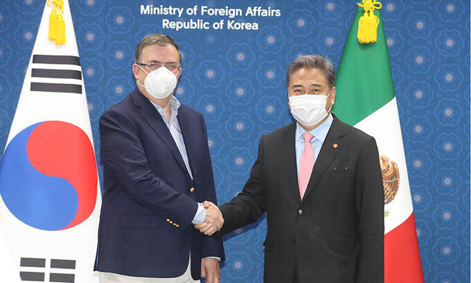 5일 외교부에 따르면 박진 외교부 장관은 전날 서울에서 개최된 마르셀로 에브라르드 멕시코 외교부 장관과의 회담에서 양국 간 경제협력의 제도화를 한층 높이자는 차원에서 이같이 밝혔다. 한국과 멕시코는 2006년 FTA 전 단계 격인 전략적 경제보완협정(SECA)을 개시했고 이듬해 이를 FTA 협상으로 격상했지만, 2008년 관련 협상이 중단된 바 있다. 이후 2016년 정상회담에서 양국은 협상 재개에 합의했으며 후속 절차를 추진해왔다.