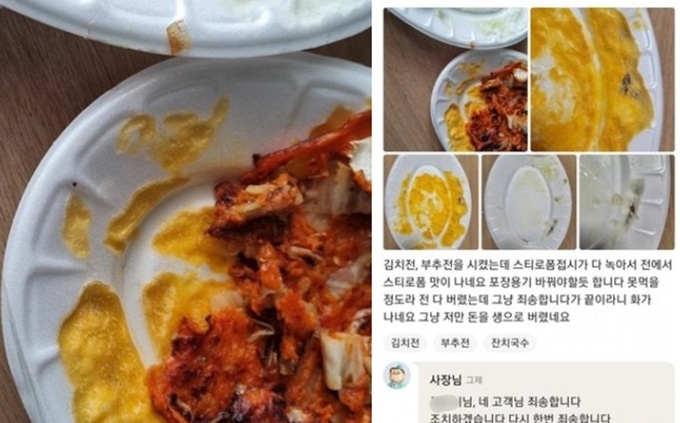 사연을 접한 네티즌들은 “스티로폼 위에 뜨거운 음식을 바로 올리는 게 말이 되냐”, “환불해주겠다 먼저 얘기를 꺼내도 모자를 판이다”, “기본적인 것도 모르고 장사하나” 등의 반응을 보였다.
