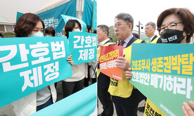 이에 간협은 건강의 패러다임이 병원, 그리고 치료 중심에서 지역, 예방·관리로 바뀌고, 간호 서비스 영역이 병원을 벗어나 노인요양원·보건소·학교·사업장 등으로 확대됨에 따라 간호사들을 위한 법안이 필요하다는 입장입니다. 특히 간호법 통과를 바라는 간협 측은 간호법을 ‘부모 돌봄법’에 비유합니다. 초고령사회가 임박한 상황에서 사회적 돌봄에 대한 국민의 요구에 부응하고 의료 체계를 개선하기 위한 법안이라는 것이죠. 간호법 제정으로 간호 인력을 지역 사회에 적절히 배치하고 장기근속을 유도하면 고령층 돌봄 등에 도움이 된다는 것입니다.
