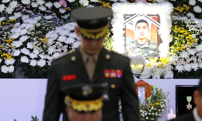해병대는 이날 경북 포항시 해병대 1사단에 마련된 채 상병의 빈소에서 서훈식을 진행했다고 밝혔다. 보국훈장은 전투 외적으로 특별한 공훈을 세운 사람에게 주는 것으로 일반 사병이 받을 수 있는 최고 훈장이다.