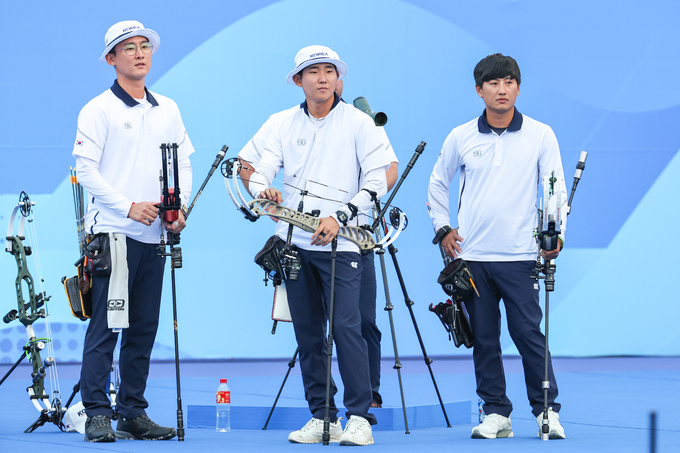 주재훈(한국수력원자력)과 양재원(상무), 김종호(현대제철)로 구성된 한국 대표팀이 5일 중국 항저우의 푸양 인후 스포츠센터에서 열린 아시안게임 양궁 컴파운드 남자 단체전 결승전을 맞아 인도에 235-230으로 무릎을 꿇었다.