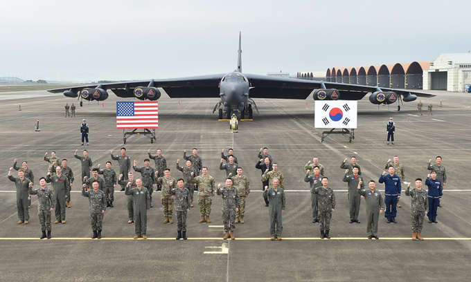 한편 주한미군은 이날 B-52H가 청주 기지에 착륙한 모습을 언론에 공개하면서 미국의 한반도 방위 및 확장억제 공약 이행 의지를 강조했다. B-52H의 착륙 현장 공개는 북한 핵·미사일 개발에 대한 경고 메시지로 풀이된다. B-52H는 지난 17일 한반도 상공에서 한국 공군과 연합훈련을 실시했고, 경기 성남 서울공항에서 열린 국제 항공우주·방위산업 전시회(ADEX) 개막식 축하 비행에 참여한 뒤 청주 기지로 이동해 착륙했다. 오는 22일에는 한반도 인근 상공에서 진행될 한·미·일 공중훈련에 참가할 예정이다.