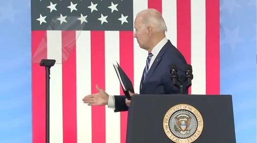 조 바이든 미국 대통령이 2022년 4월 노스캐롤라이나주 그린즈버러에 소재한 노스캐롤라이나 농업·기술주립대학에서 연설을 마친 뒤 허공을 향해 악수를 건네고 있다. 이 해프닝으로 대통령의 나이에 따른 건강 이상설이 재점화됐다.
