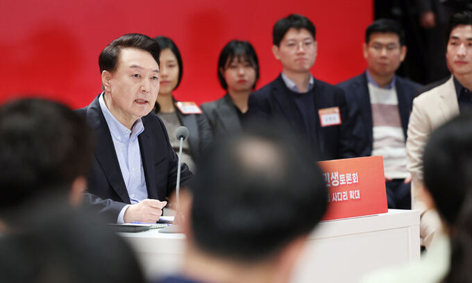이날 윤 대통령은 지난 2일 새해 증시 개장식에 참석한 지 2주 만에 한국거래소를 다시 찾아 개인 주식 투자자, 핀플루언서(금융 분야 인플루언서), 주택담보대출 대출자 등과 이야기를 나눴다.