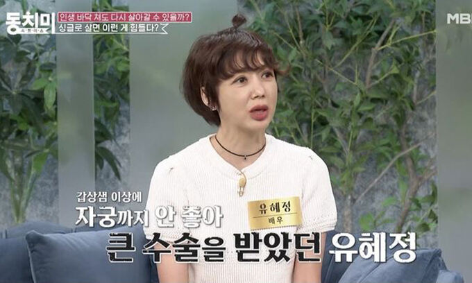 유혜정은 "빈혈 수치는 거의 상상을 초월했다. 응급실에 갔더니 의사가 '바로 죽을 수도 있다. 어떻게 걸어다녔냐'고 말할 정도였다. 갑상샘 이상에 최근에는 자궁까지 안 좋아져서 큰 수술까지 받았다"고 했다.