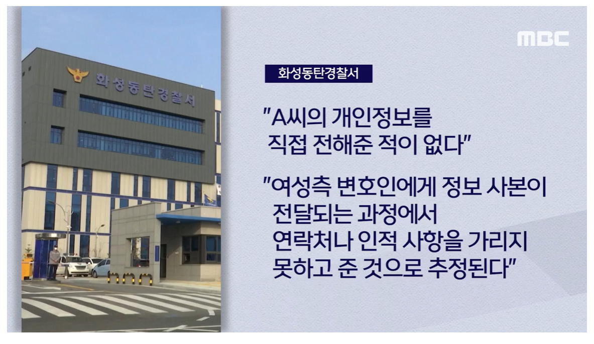경기 화성동탄경찰서 측은 "A씨 개인정보를 직접 전해준 적이 없다"고 선을 그었다.