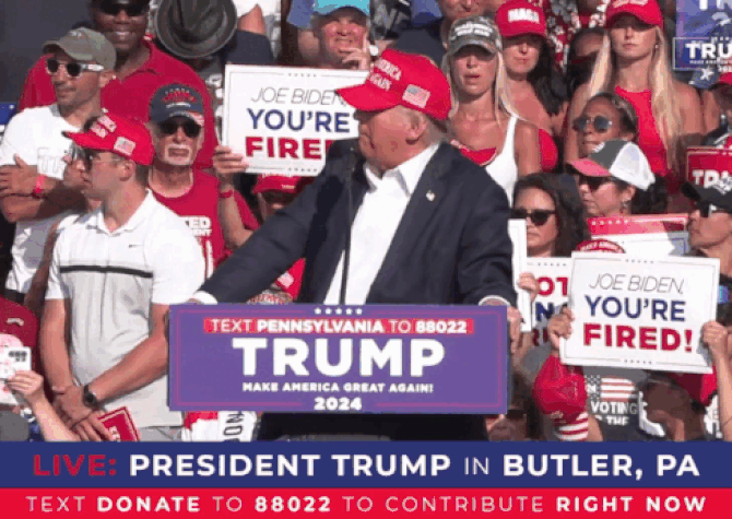 총성이 울리자 경호원들이 트럼프 전 대통령 위로 뛰어들어 보호했고, 트럼프 전 대통령은 그 와중에도 몸을 일으켜 세운 뒤 불끈 쥔 주먹을 위로 향했다. 이어 긴급 대피해 현재 무사한 것으로 확인됐다.