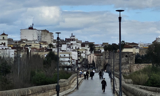 메리다는 과거와 현재가 공존하면서 숨 쉰다. 메리다에 가면 2000년 전 로마의 유적이 지금도 실생활에서 사용되고 있어 놀랍다. 로마 시대를 재현한 거대한 옥외 박물관이다. 그중에 압권은 구아디아나 강을 가로지르는 로마교이다. 사람들이 이 다리를 건너 바쁘게 도시 사이를 오간다. 이 다리는 길이 792m, 총 60개의 아름다운 화강암 아치로 만들어졌다. 고풍스러운 화강암의 예술미가 돋보이며, 특히 인공조명에 빛나는 밤의 로마교는 물 위에서 춤추는 환상적인 조각품이다.