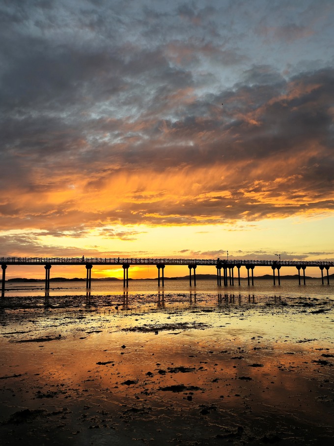 가시거리를 무한대로 펼친 투명한 가을 하늘과 하얀 구름까지 그대로 담는 바다. 그 위로 길게 놓인 알록달록 스카이워크를 연인이 손잡고 걷는다. 철 지난 해변의 고즈넉한 풍경을 즐기며. 서서히 어둠이 내리고 조개 캐는 아이들의 재잘거리는 소리마저 잦아들면 이제 마법이 펼쳐질 시간. 푸르던 하늘과 바다를 온통 붉게 채색하며 떨어지는 붉은 태양은 마치 ‘빛의 화가’ 클로드 모네의 위대한 작품을 보는 듯하다. 함평 돌머리해변에서 가슴에 긴 여운을 남기는 ‘인생노을’을 만났다.