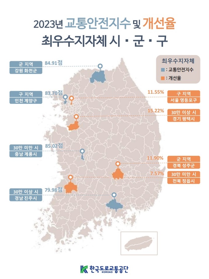 경기 평택시와 전북 정읍, 경북 성주, 서울 영등포구는 2022년보다 교통안전지수가 향상된 것으로도 조사됐다.