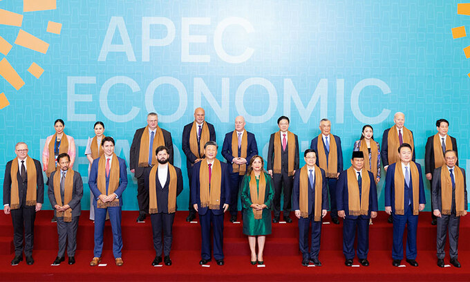 페루에서 개최된 2024년 아시아태평양경제협력체(APEC·에이펙) 정상회의가 16일 폐막했다. 에이펙에 참석한 정상들은 같은 날 페루 안데스 산맥에 서식하는 낙타과 동물인 비쿠냐의 털로 만든 갈색빛의 스카프를 두르고 단체 기념사진(사진)을 촬영했다.