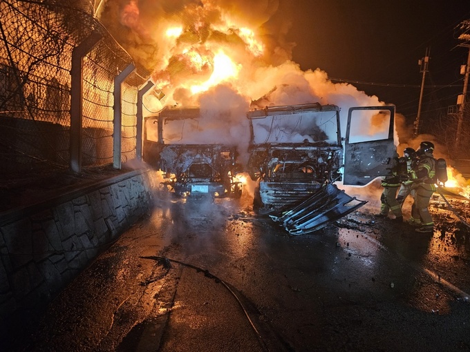 출동한 경찰과 소방 당국은 발에 화상 등으로 다친 덤프트럭 운전자 30대 A씨를 발견하고 병원으로 옮겼다. 이때까지 사상자는 1명이었다.