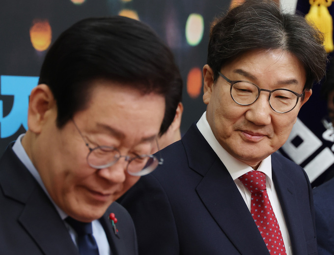 권성동 국민의힘 대표 권한대행 겸 원내대표가 18일 취임 인사차 이재명 더불어민주당 대표를 예방했다. 윤석열 대통령 탄핵소추안 가결 이후 첫 대면이었다. 화기애애한 분위기 속에서도 최근 정국에 대해선 다른 입장을 보였다. 권 대행은 이 대표를 향해 ‘대통령제 개헌의 전향적 검토’를 요청했고, 이 대표는 ‘민생추경’과 ‘국정안정협의체’를 거듭 제안했다.