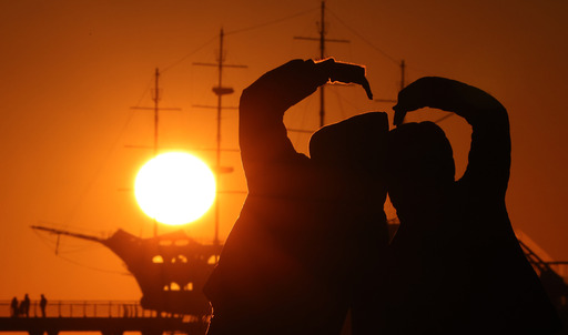 2025년 새해가 떠올랐다. 불안정한 국내 정치, 바닥을 모르고 추락하는 민생경제, 사회 전반의 불신과 반목, 대립으로 얼룩졌던 2024년은 끝났다. 한꺼풀 허물을 벗어 새롭게 성장한다는 뜻의 ‘푸른 뱀의 해’ 을사년(乙巳年)에는 우리 사회 크고 작은 모든 일들이 복되길 바란다. 사진은 젊은 연인으로 보이는 커플이 강원 강릉시 정동진 해변에서 떠오르는 해를 바라보며 팔로 하트를 그리고 있는 모습.