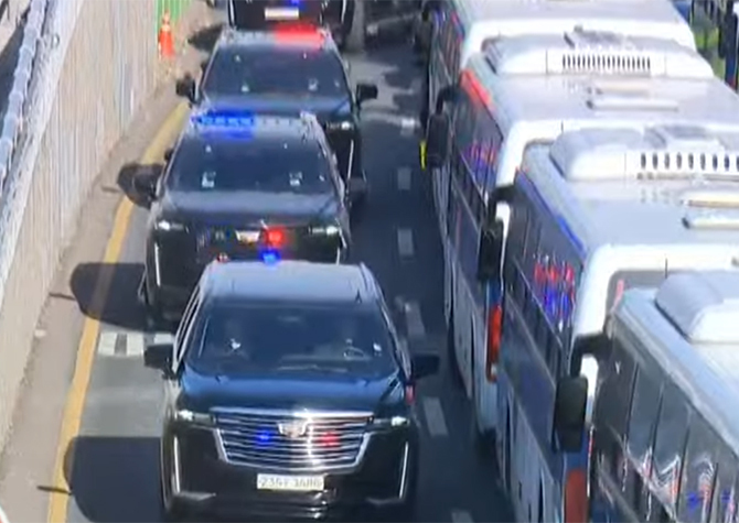 尹 대통령 탑승 추정 차량 행렬 관저 밖으로 이동