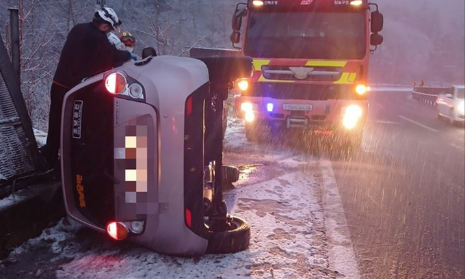 같은 날 낮 12시 20분쯤에는 강원 영월군 북면에서 트럭이 약 3m 아래로 추락해 운전자가 다쳤다. 또 오전 11시 5분쯤에는 강원 횡성 청일면에서 차량이 3m가량 아래로 떨어져 구조대가 3명을 구조했다.