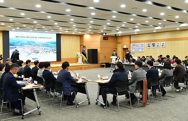 조현일 경산시장을 비롯한 관계 공무원과 외부 전문가 등 40여 명이 참석한 가운데 진행된 이날 보고회는 경산지식산업지구 내 입주를 앞둔 대형 프리미엄 쇼핑몰 주변 활성화와 쇼핑몰 방문객의 지역 내 상권 유입을 통한 지역상생 발전방안 등에 대해 논의하는 자리가 됐다.