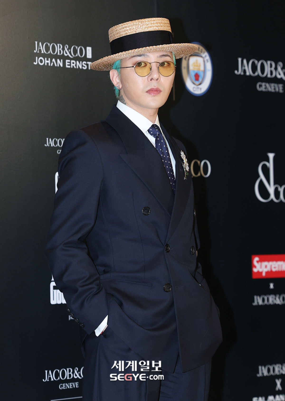 가수 지드래곤이 24일 오후 서울 용산구 한남동 하얏트호텔에서 열린 럭셔리 워치&주얼리 브랜드의 코리아 부티크 그랜드 오픈기념 행사에 참석하고 있다.