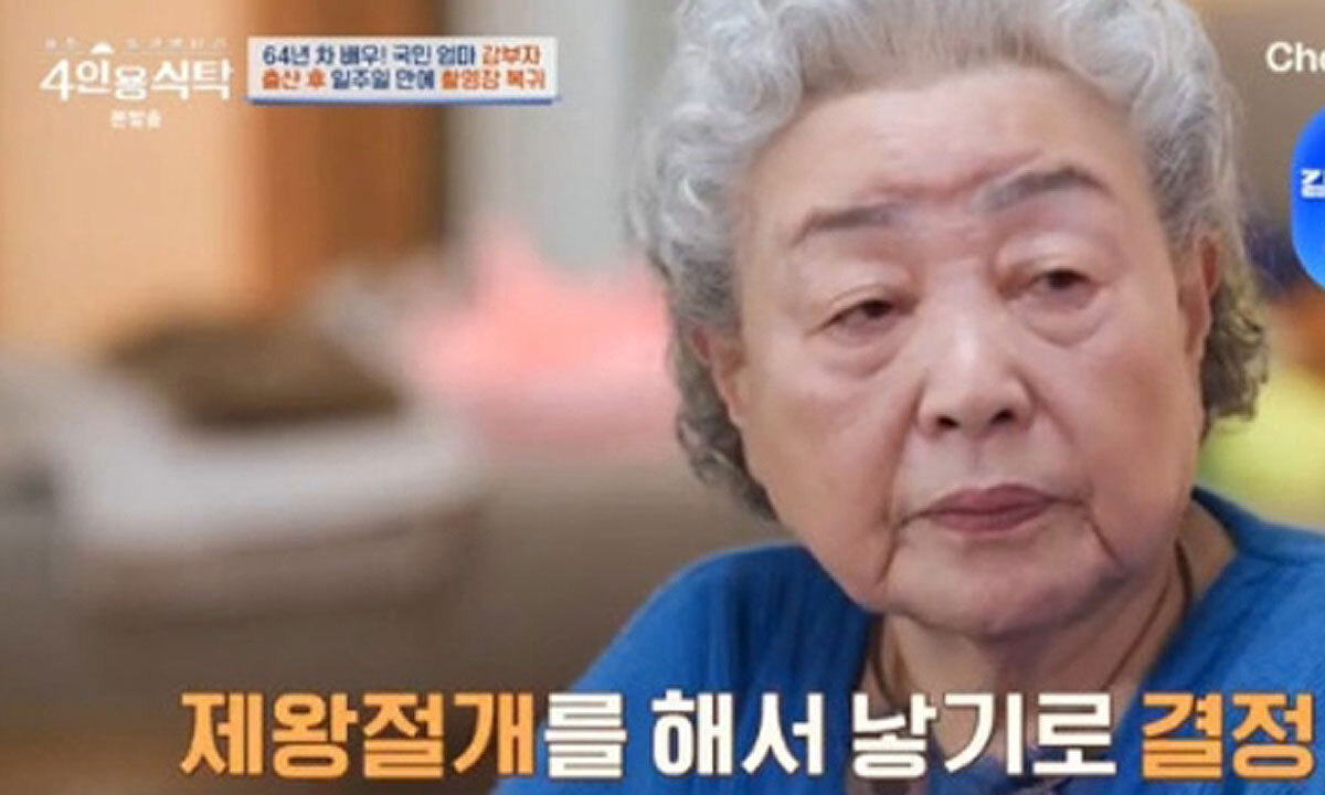 강부자는 3일 방송된 채널A 예능프로그램 '절친 토큐멘터리 4인용식탁’에 배우 윤유선·이하늬, 방송인 조우종과 함께 나와 제왕절개로 아이를 낳고 나서 일주일 만에 연기를 했다고 말했다.