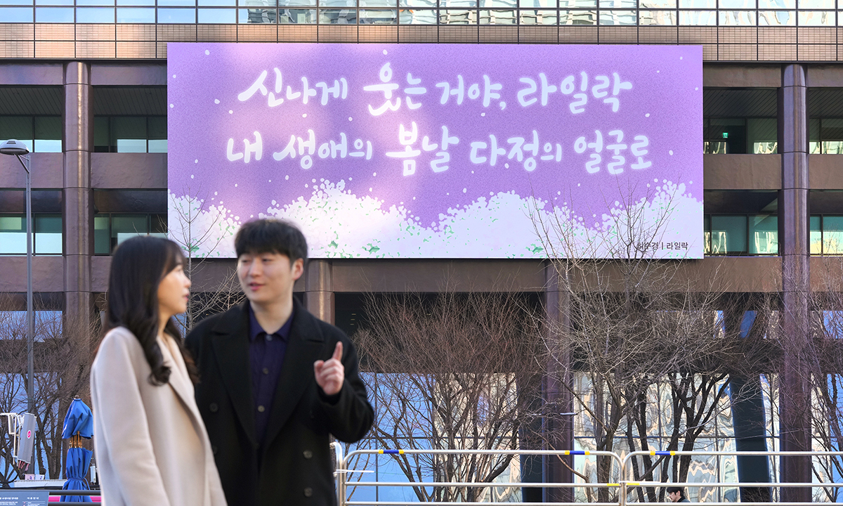 교보생명은 허수경 시인(1964~2018)의 시 ‘라일락’에서 가져온 광화문글판 봄편을 6일 공개했다.