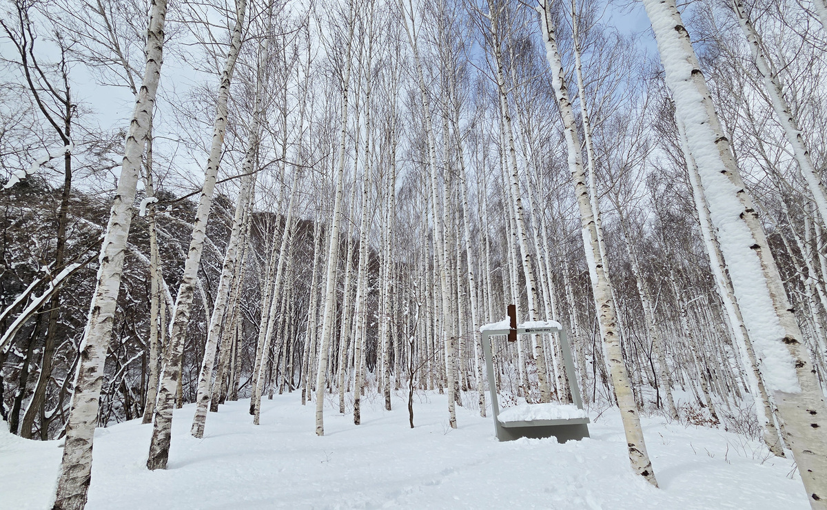 자작나무 숲길은 산책을 즐기기에 제격이다. 1.49㎞의 1코스와 1.52㎞의 2코스는 설산이 처음인 초보에 안성맞춤이다. 전망대로 올라가면 고도 800m에서 자작나무숲 일대를 조감할 수 있다. 곳곳에 배치된 포토존에서 추억을 남길 수도 있다.