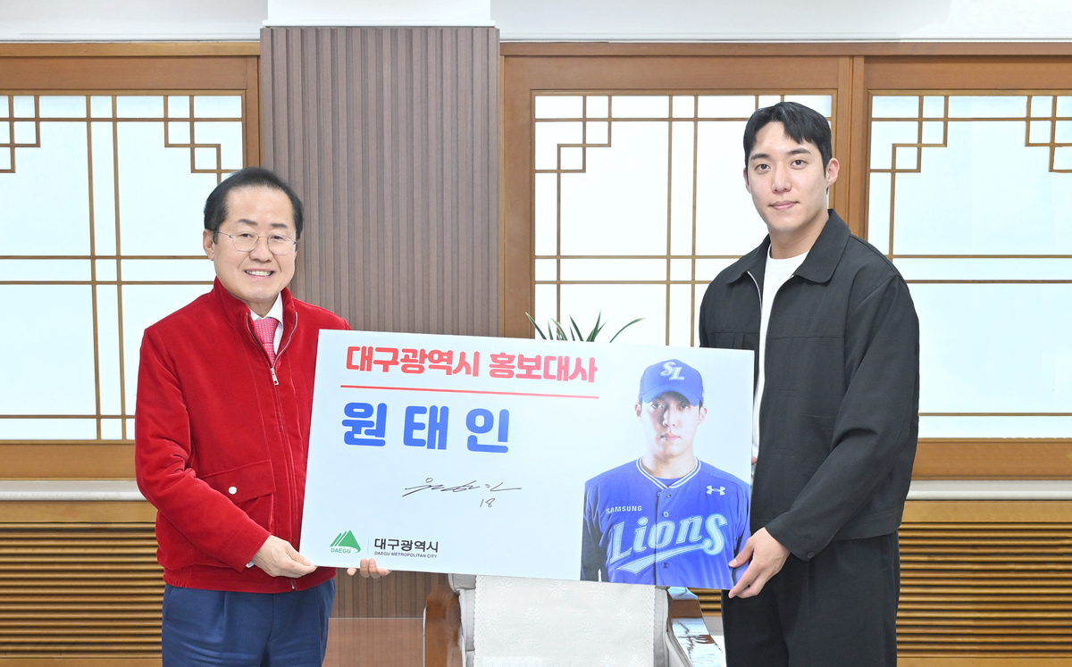 홍준표 시장은 "대구를 대표하는 스포츠 스타인 원태인 선수의 뛰어난 실력과 긍정적인 이미지는 대구의 매력을 널리 알리는 데 큰 역할을 할 것"이라며 "지역을 홍보하고 시민들에게 자긍심을 심어주는 홍보대사로 활약해 주길 바란다"고 말했다.