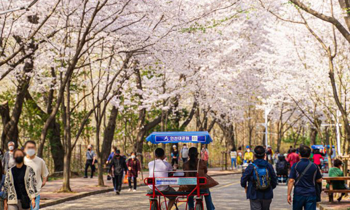 29일 인천관광공사에 따르면 도심 속에서 만나는 인천대공원은 40년 이상된 왕벚나무 800여 그루가 약 1.2㎞ 구간에 걸쳐 터널을 이룬다. 가족, 연인, 친구와 함께 산책로를 따라 걸으며 따뜻함을 만끽할 수 있다. 4월 5∼6일 열리는 벚꽃축제에서 다채로운 공연과 체험 프로그램을 즐겨보자. 이곳에서 자전거를 빌려 달리면 봄향기와 꽃의 아름다움을 더욱 가까이에서 느낀다.