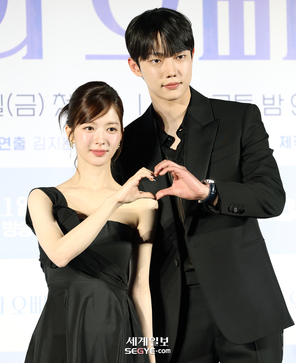 배우 노정의(사진 왼쪽)와 이채민이 3일 오후 서울 용산 CGV에서 열린 MBC 새 금토드라마 '바니와 오빠들'의 제작발표회에 참석해 포즈를 취하고 있다.