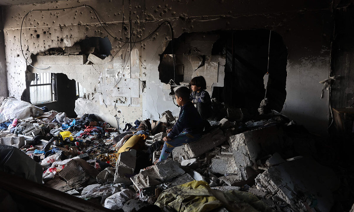 가자지구 북부 자발리아 난민촌에서 2일(현지시간) 팔레스타인 아이들이 총탄 자국이 선명한 폐허 속에서 몸을 숨기고 있다. 이날 이스라엘군의 자발리아 난민촌에 위치한 유엔 건물 공격으로 19명이 숨졌고, 이 중 9명은 어린이라고 가자지구 민방위대는 밝혔다. 이스라엘군은 지난달 18일부터 가자지구 공습을 재개한 뒤 지상군을 투입하는 등 하마스 소탕을 위한 군사작전의 고삐를 죄고 있다. 가자지구 보건당국에 따르면 이스라엘이 공격을 재개한 이후 이날까지 발생한 팔레스타인인 사망자는 1066명이다. 가자전쟁이 시작된 이후 1년 반 동안 전란에 휘말려 목숨을 잃은 가자지구 주민은 최소 5만423명으로 집계됐다.