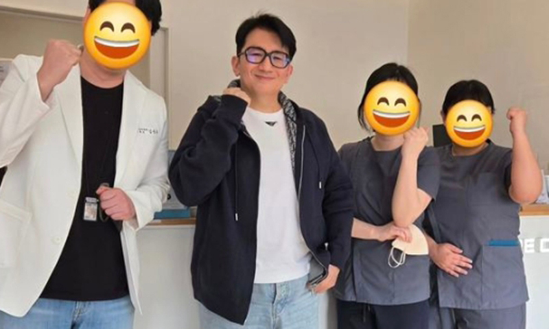 사진 속 방시혁은 헬스케어 센터 직원들과 나란히 서 있는 모습이다.