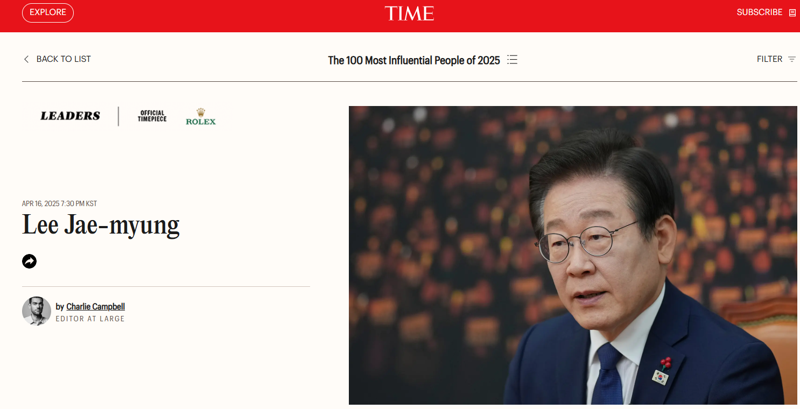 미국 시사주간지 타임이 선정한 ‘올해 가장 영향력 있는 100인’(타임 100)에 더불어민주당 이재명 대선 경선 후보가 포함된 것과 관련, 이 후보 측은 16일 “대한민국 민주주의가 모범적이라는 점을 국제사회가 평가한 것”이라는 입장을 밝혔다.