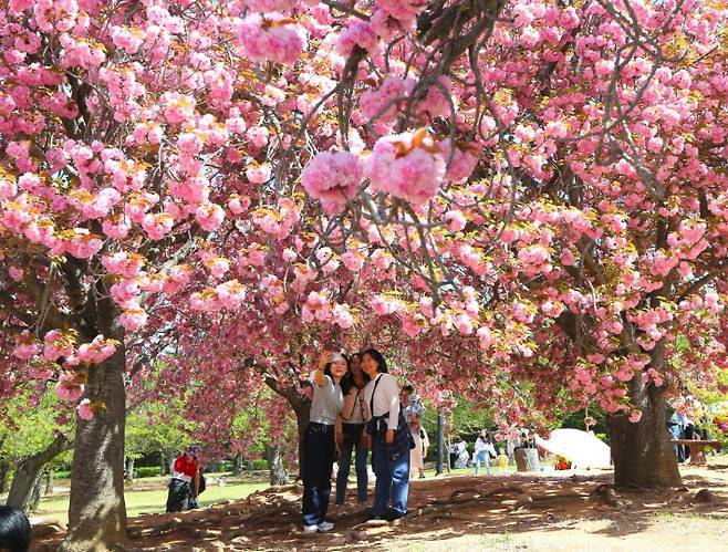 겹벚꽃이 절정을 이루면 분홍빛 꽃잎이 꽃터널을 만들어 '인생샷 명소'로 각광받는다.
