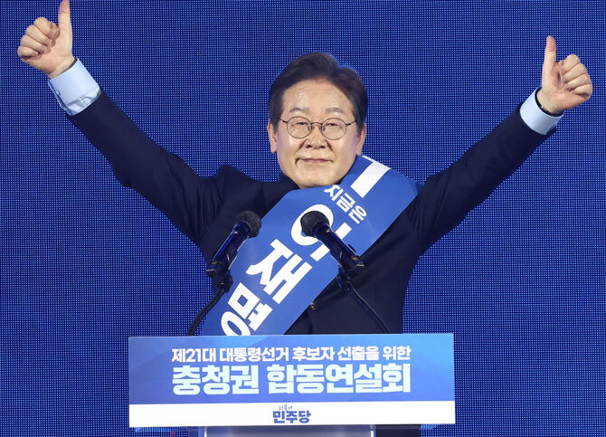이재명 더불어민주당 대선 경선 후보는 19일 첫 순회경선지인 충청권 합동연설회에서 “저 이재명이 김대중·노무현·문재인의 뒤를 이어 네 번째 민주정부를 수립하겠다”며 “이재명에게 기회를 달라”고 호소했다.