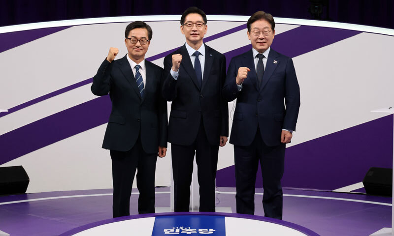 더불어민주당 대선 후보 경선 첫 TV토론에서 김동연·김경수 후보는 대통령실 이전 문제와 개헌 문제 등을 두고 이재명 후보와 차별화에 나섰다. 사실상 독주를 이어가는 이 후보를 양김이 각각 견제하는 양상이다.