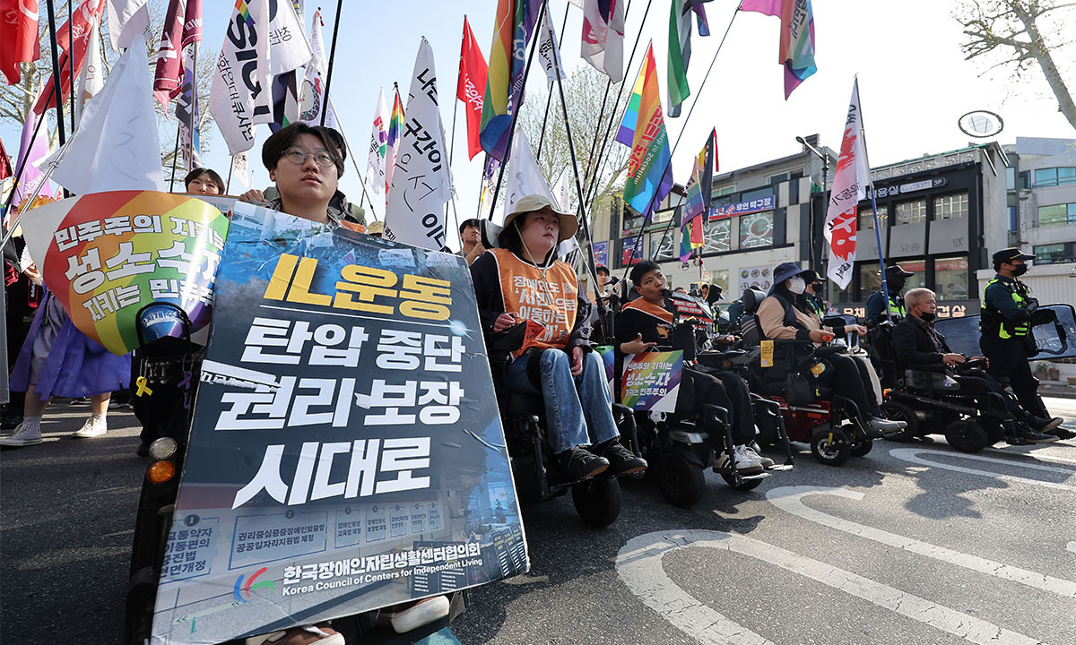 공동투쟁단은 “수많은 후보가 대선 출마 기자회견에서 포부를 밝히고 있으나 장애인 권리에 대한 목소리를 내지 않는다”며 “장애인도 시민으로 이동하는 민주주의를 약속해 달라”고 요구했다.