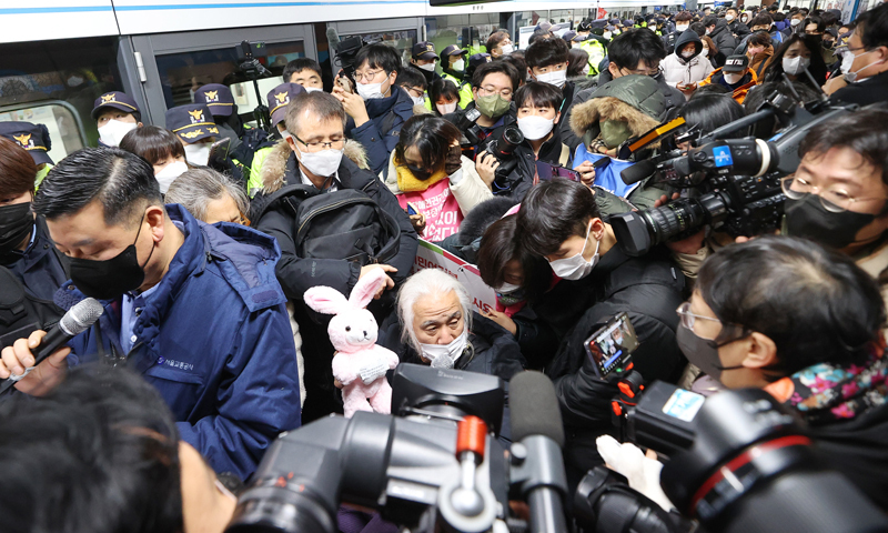 전국장애인차별철폐연대(전장연)의 출근길 지하철 탑승 시위가 1년여 만에 재개됐다.