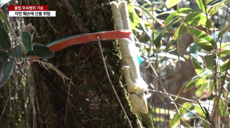 문제는 무속 행위를 하는 과정에서 자연훼손뿐 아니라 초를 사용하거나 불법 소각 행위가 이뤄지고 있는 것이다.