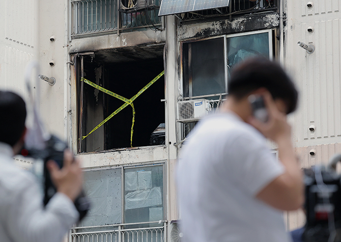 맞은편 아파트의 한 주민(86)은 "집 안에 있는데 어마어마하게 큰 소리가 나 놀랐다"고 했다. 50대 정모씨는 "'펑'하는 소리 이후 소방차 소리가 들렸다"며 "하필 임대동이라 어르신들이 많이 다친 것 같다"고 말했다.